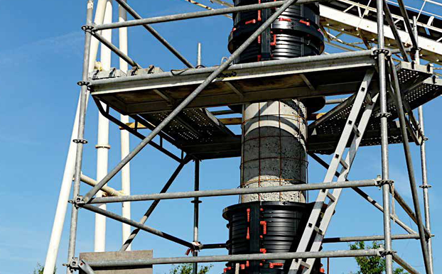 Säulenreparaturen werden in der Regel an instabilen, unzugänglichen Strukturen, bei begrenztem Raum und wenig Zeit und unter wechselnden Wetterbedingungen durchgeführt.