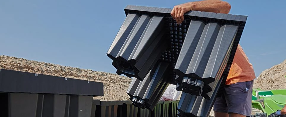 Geotub erfüllte diese Anforderungen, da die Elemente aus Recycling-Kunststoff bestehen und ohne Spezialgeräte montiert werden können.