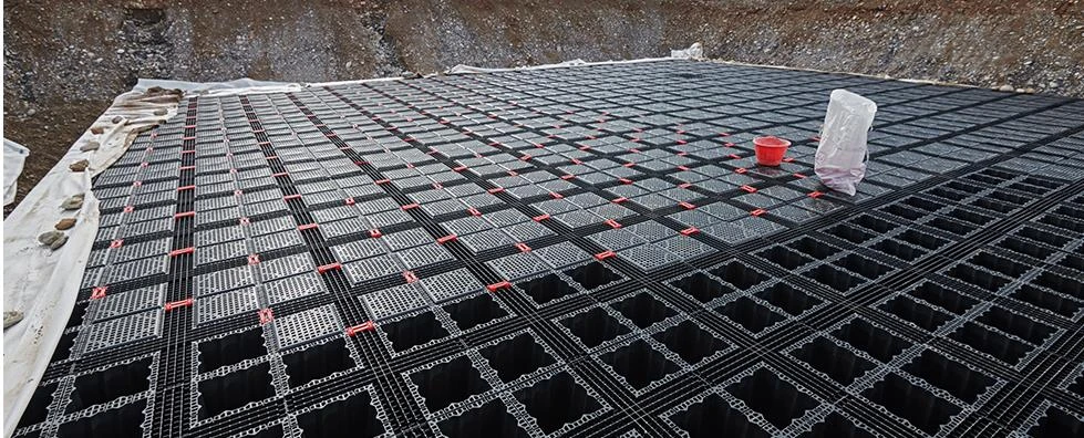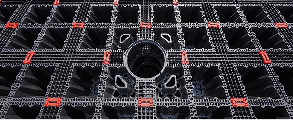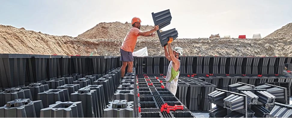 Die Schalungen bestehen aus recyceltem Kunststoff und verringern so den Einsatz neuer Rohstoffe.